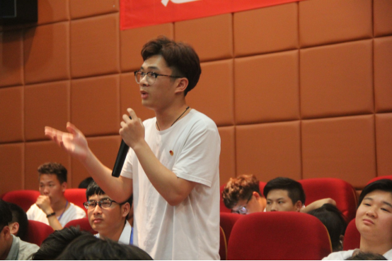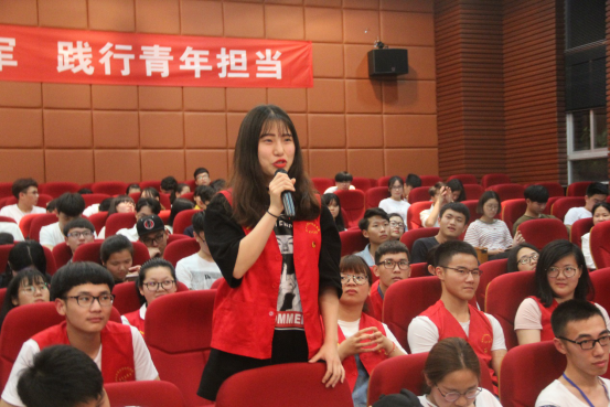 根据视频内容,主持人对在座的观众进行提问,观众们纷纷举手积极发言,表达认知,畅谈理想。问答过后,来自各分院(系)、学生组织代表依次上台进行发言,主要阐述自己在近一年来学习的成就以及对于本次研讨会的感想。同时也激励在座的观众努力学习,奋发向上。