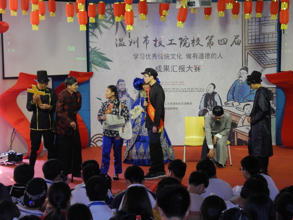 温州市技工院校“学习优秀传统文化,做有道德的人”成果汇报大赛至今开办了四届,已成为温州市技工院校的重点保留节目,且已深入各技工院校全体师生的人心了,受到业界广泛的称道和欢迎。我院历年来作为大赛的承办方,亦是为了加强中职院校整体的道德建设贡献力量,肩负起弘扬传统文化的重任,使传统文化的深蕴内涵和优秀美德注入每位学生的心灵,进而对每位学生产生积极健康的影响,不断秉承文化和道德素养的正能量。