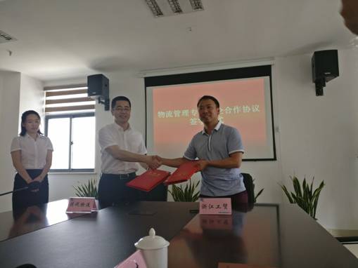 温州现代保税物流有限公司董事长曾朝晖与物流学院副院长陈碎雷签订物流管理专业合作协议
