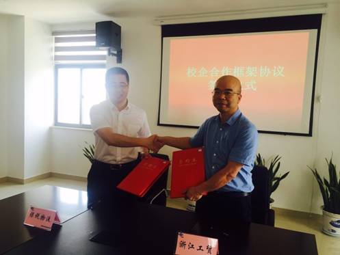 学院副院长汪焰与温州现代保税物流有限公司董事长曾朝晖签订校企合作协议
