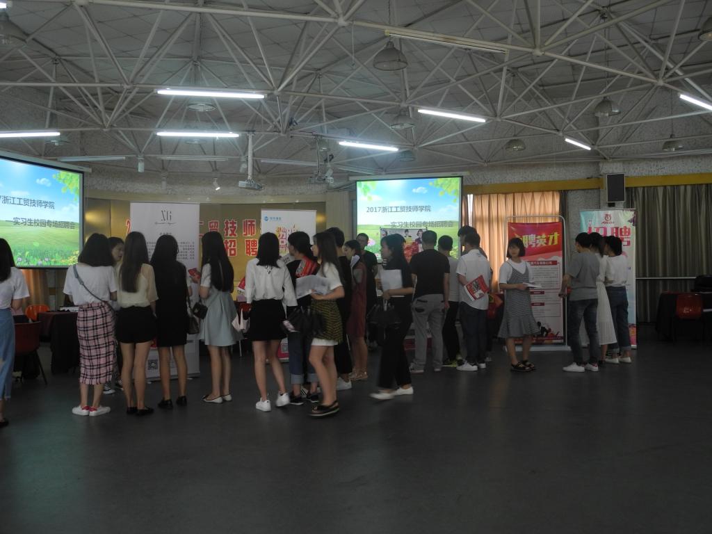 为了拓宽毕业生就业渠道,大力构建校企合作无缝对接,2017年6月9日下午,我院在一号楼二楼多功能厅举行2017年校园招聘会,此次招聘会聚集了温州雪歌服饰、温州三信贷等13家用人单位前来招纳贤才,提供经贸类岗位100多个,13级62名学生出席本次招聘会。