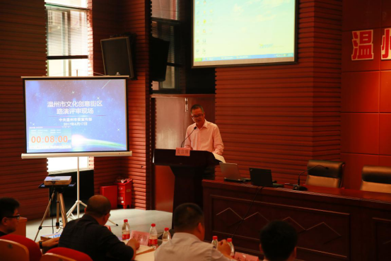 文化创意街区:17日下午两点开始进行温州市各大文化创意街区的路演,由林主任做开场演讲。参加街区包括本次路演所在地,蒲鞋街道创意街区、瓯窑小镇大师街等8大创意街区。路演的打分指标包括以下七个方面:规划设计、功能定位、空间规模、配套设施、品牌活动、运营管理、综合表现能力。创意街区是文化产业集聚的的表现,他的规模比较大,包含了创意园和众多的文化企业,给他们提供一个工作和交流的平台,促进文化产业蓬勃的发展,也给街道带来丰富的文化气息,加快退二进三的进程,同时也带动了街道经济的发展。