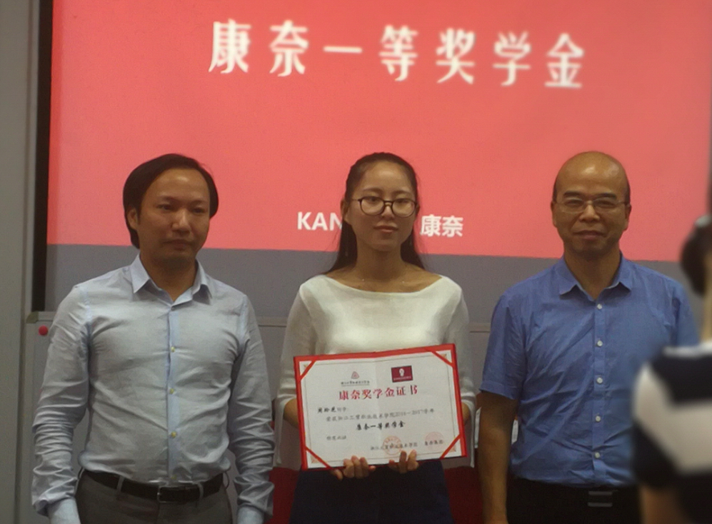 课程汇报由学生汇报、企业主管教师点评、优秀作品颁奖、首届康奈奖学金颁奖等四个环节组成,汇报结束后,汪焰副院长与郑莱毅总经理分别代表学院和康奈对本次活动进行了点评。汪焰副院长对康奈集团领导及相关负责部门为康奈班的付出表示感谢,并用“遇见”、“感恩”和“期待”这三个关键词勉励康奈班学生抓住机遇,遵循“匠心”、“极致”和“精准”的专业学习理念,未来走得更好。郑莱毅总经理首先对获得康奈奖学金的同学表示祝贺,并对康奈班学生在康奈集团的学习情况进行了简要介绍,对康奈班的未来规划做出了指导性的意见。郑莱毅总经理希望康奈班学生在未来的学习中,能够继续享受学习的美好时光,能够学以致用,学会参与,得到全面发展。