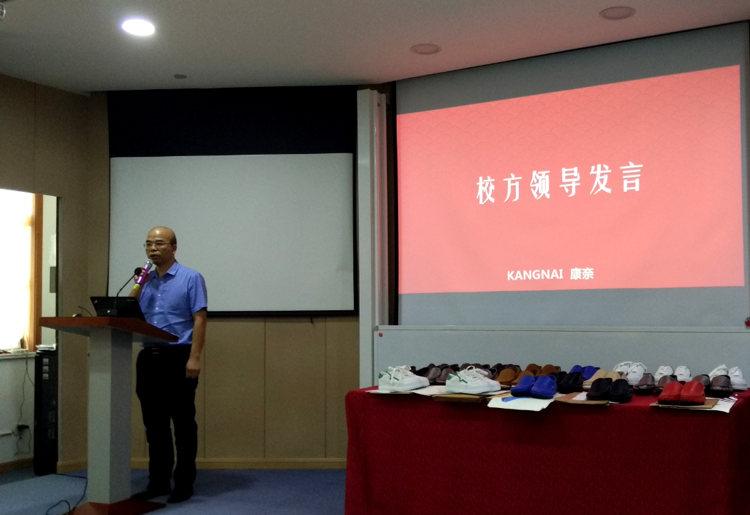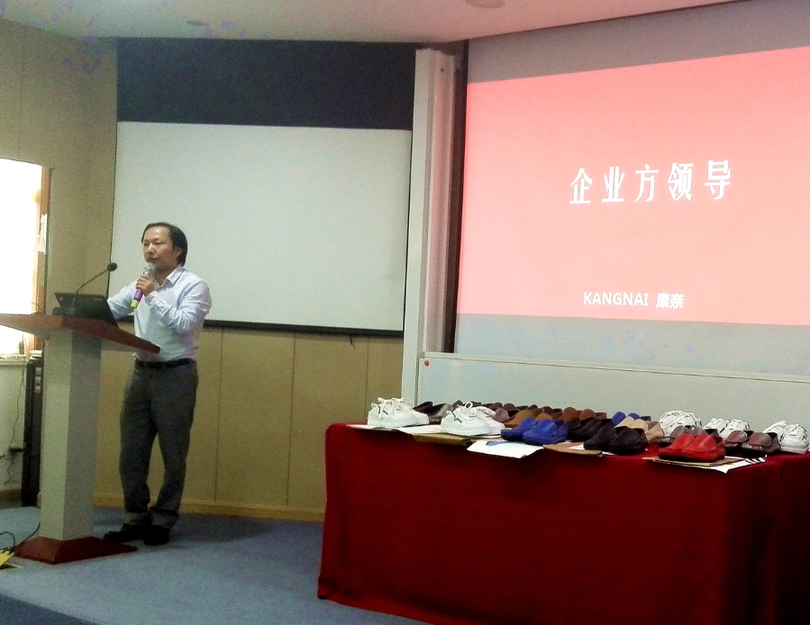 6月24日下午,学院副院长汪焰在设计分院院长卢行芳、分院书记杨松涛等人的陪同下,赴康奈集团看望鞋类专业首届康奈订单班的学生,并与康奈集团总经理郑莱毅、行政副总吴圣能,党委书记蔡发荣,人力资源部总监陈君一道,听取了学生的课程汇报。