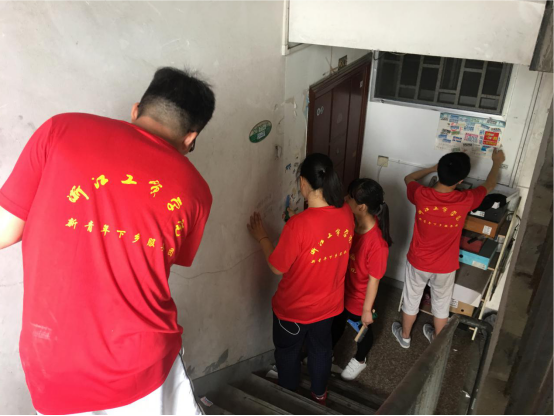 由于小广告的数量较多而且粘的太牢,给清理工作带来了一定的难度,但是却挡不住实践队员们的努力与决心。全体队员拿着铲子专注地铲除墙面上、门上、消防栓上这些形形色色的小广告,想尽各种办法与“牛皮癣”作斗争,不给小广告留下一丝生存空间。