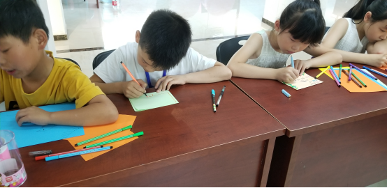 志愿者和小朋友们初次见面,进行自我介绍。彼此相互认识,拉进距离,减少陌生感后志愿者们教小朋友们制作自己的名片。