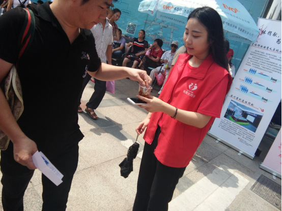 在志愿者们的劝说下,虽然有少部分的人不情愿灭掉手中的烟,但大部分还是配合得把烟放进了塑料杯中。工作持续了两个小时以上,即使志愿者们满头大汗,也坚持着在医院里巡逻。