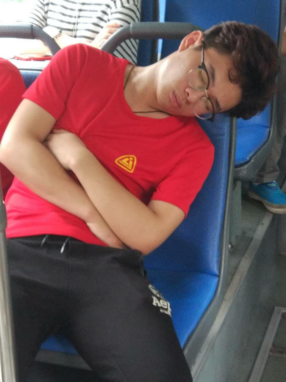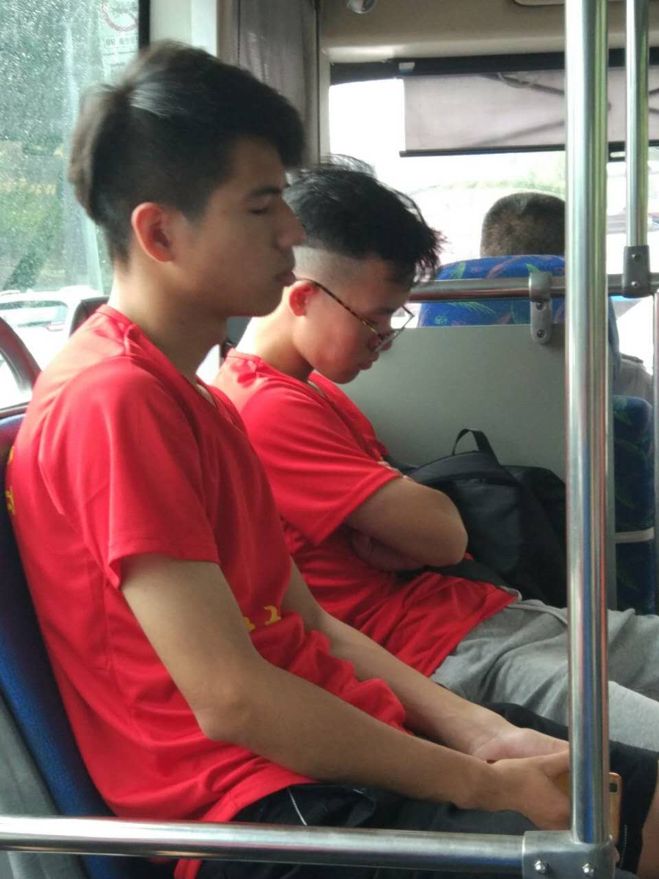 回来的路上,经过几天的疲劳,我们同学在公交车上就陷入了梦乡!