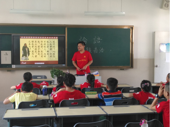 小朋友们陆续来到教室,小风车服务队成员小嘉哥哥先进行了自我介绍,接着便带领20位小朋友晨读《论语》。