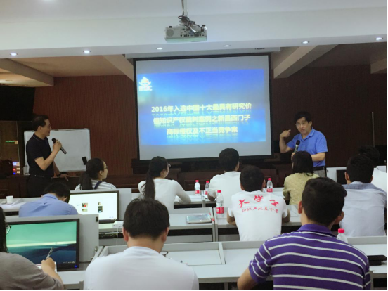 温州知识产权学院院长陶鑫良教授从大学生身边的知识产权谈起,阐述了互联网背景下著作权授权革新模式。浙江省高级人民法院高级法官应向健以法官的视角向学员们解读了“知识产权司法保护实证分析”,以典型知识产权纠纷——新昌西门子商标侵权不正当竞争案为例,结合时代背景、经济利益等方面予以详细剖析。许春明教授以“技术创新与专利制度”为主题,从专利的演变历史到现今的专利政策,从不同的维度和广度介绍了技术创新与知识产权保护之间的紧密联系。超凡知识产权股份有限公司咨询总监杨熙老师给学员们带来专利基础课程,他以学员的兴趣为抓手,以专利基本检索为起点,为学员普及专利基础知识。优酷土豆集团知识产权总监王冀老师从专利分析的角度更深一层次介绍了如何分析有效专利,形成企业专利策略规划报告。