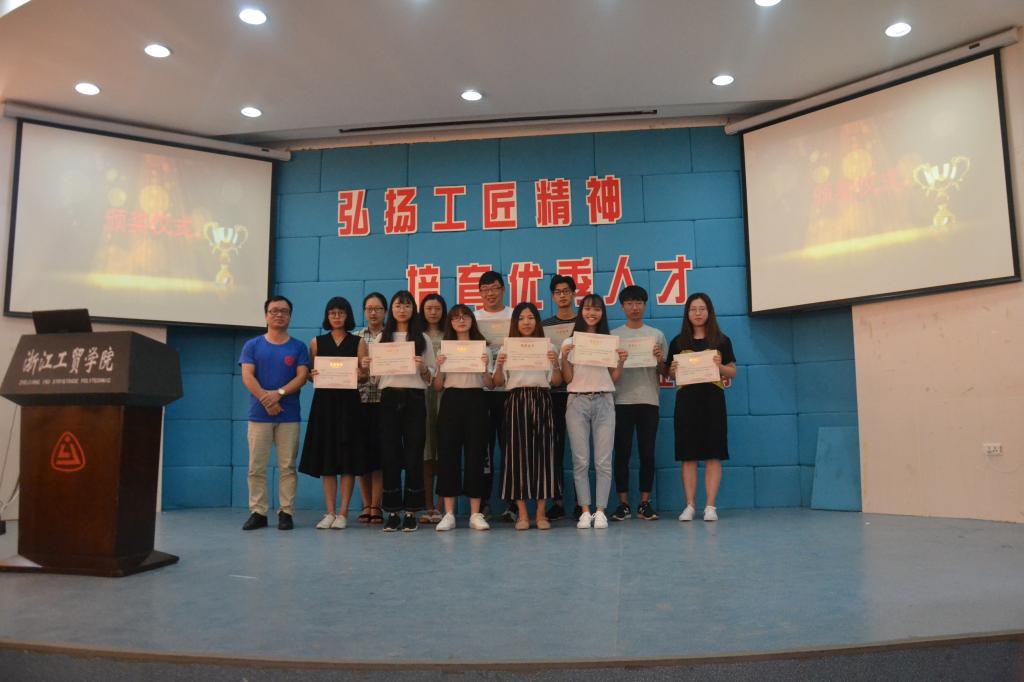 会议的第二议程是颁奖环节。分别为在暑期的德力西爱心支教活动中取得优秀成绩的24名同学、为获得“经贸分院诚信考场班级”称号的班级、为星级班级颁奖。其中,获得“经贸分院诚信考场班级”称号的是商英1601以及商英1603,获得四星的班级有商英1601、国贸1602、电商1602、物流1602、营销1601、商英1602、国贸1501、商英1502、物流1501、国贸1503、商英1503,获得五星的班级是商英1603和营销1501,祝贺他们。