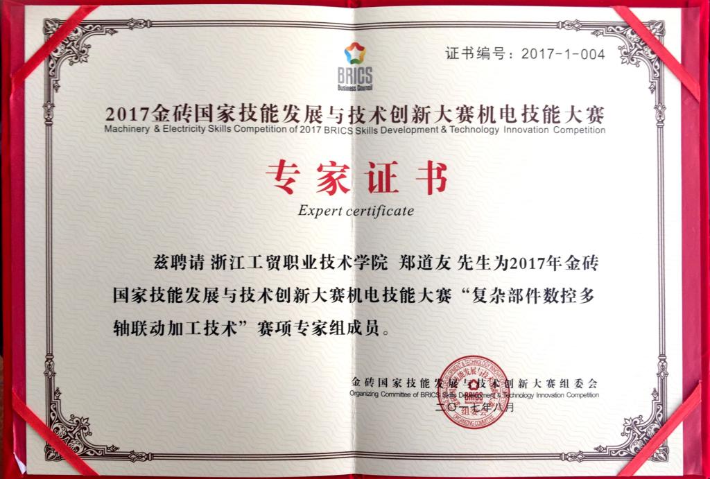 金砖国家技能发展与技术创新大赛专家证