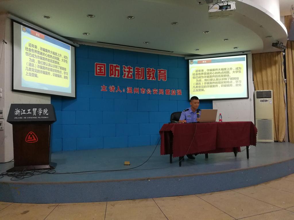 9月14日晚,浙江工贸技师学院在阶梯教室进行了2017级新生法制教育讲座。本次讲座由温州市公安局戴益强警官主讲,现场气氛热烈,讲座内容翔实,同学们深感获益良多。