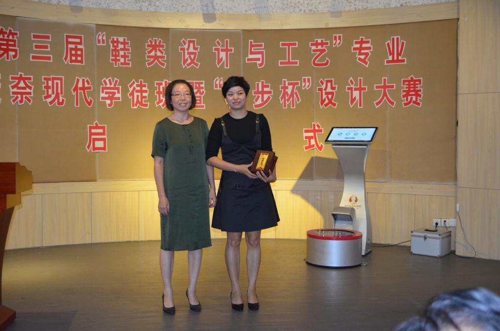 鞋类专业的主任鹿雷老师向大家简单的介绍了鞋类专业的情况,鞋类专业包括专业的理论知识和社会实践等技能,他指出校企合作至关重要,同时“鞋类设计专业”现代学徒班是终极目标之一。接着李秀靖经理介绍了第一、二届“康奈学徒班”培养的情况,他也简单的介绍了第三届“康奈学徒班”选拔及培养计划。教务处处长程有娥为企业优秀指导老师聘书颁奖,优秀校友江艳芳代表企业指导老师领取证书。