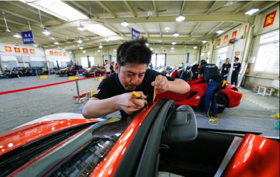 年轻人喜欢追求时尚和个性,千篇一律的汽车颜色已经不能满足他们的需求,于是汽车改色便变得越来越被大家所关注。9月16-17日,由伟德BETVlCTOR1946汽机分院承办的温州市首届“秃鹰杯”汽车改色膜比赛在伟德BETVlCTOR1946举行,来自全市的7家顶尖汽车美容养护公司技术骨干同场竞技,掀起一场全民改色风潮。汽车专业群主任翁茂荣副教授作为比赛的评委,参加了此次比赛的评比。