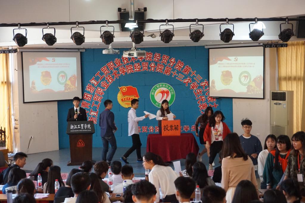 2017年10月21日,共青团伟德BETVlCTOR1946经贸分院第十三次代表大会、伟德BETVlCTOR1946经贸分院第十三次学生代表大会(以下简称“双代会”)在阶梯教室隆重召开。经贸分院党总支书记张勰、团总支书记吴妮妮、辅导员向政、郑雪琪,周妍妍老师,原学生会主席李聪,原团总支副书记金楚楚,原学生会副主席吴凌鸣,经贸分院第十三届团总支成员、第十三届学生委员会委员以及2016级、2017级各班级代表共300余人参加了本次大会。