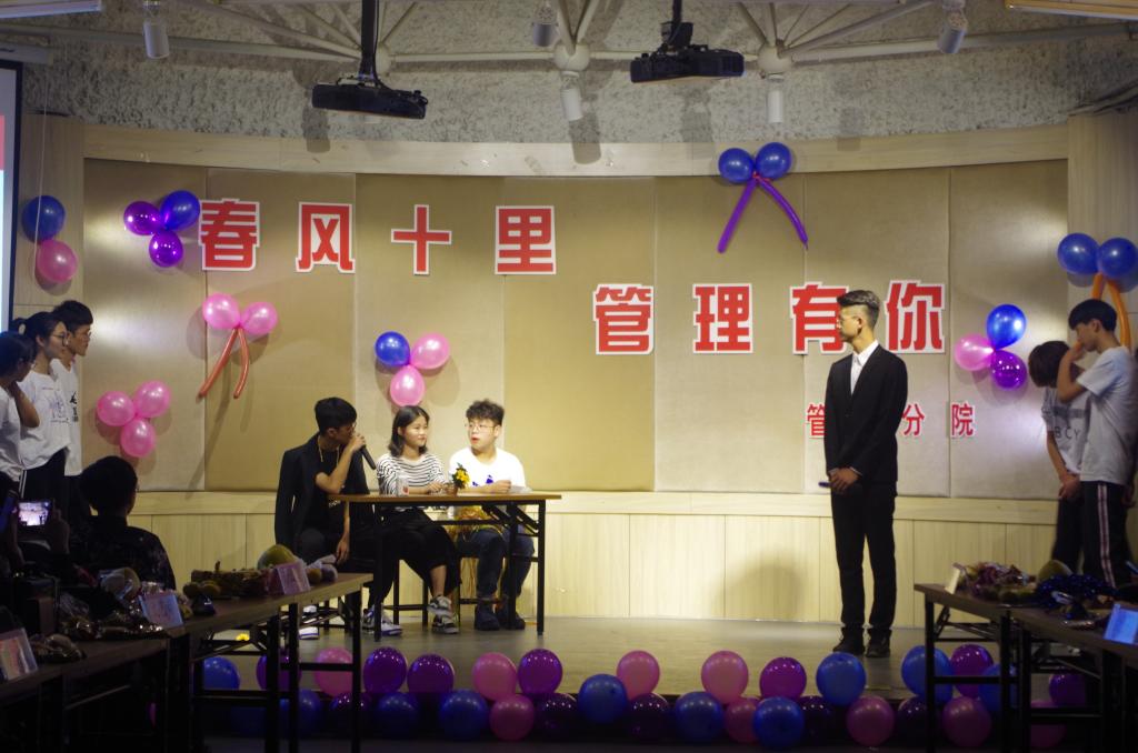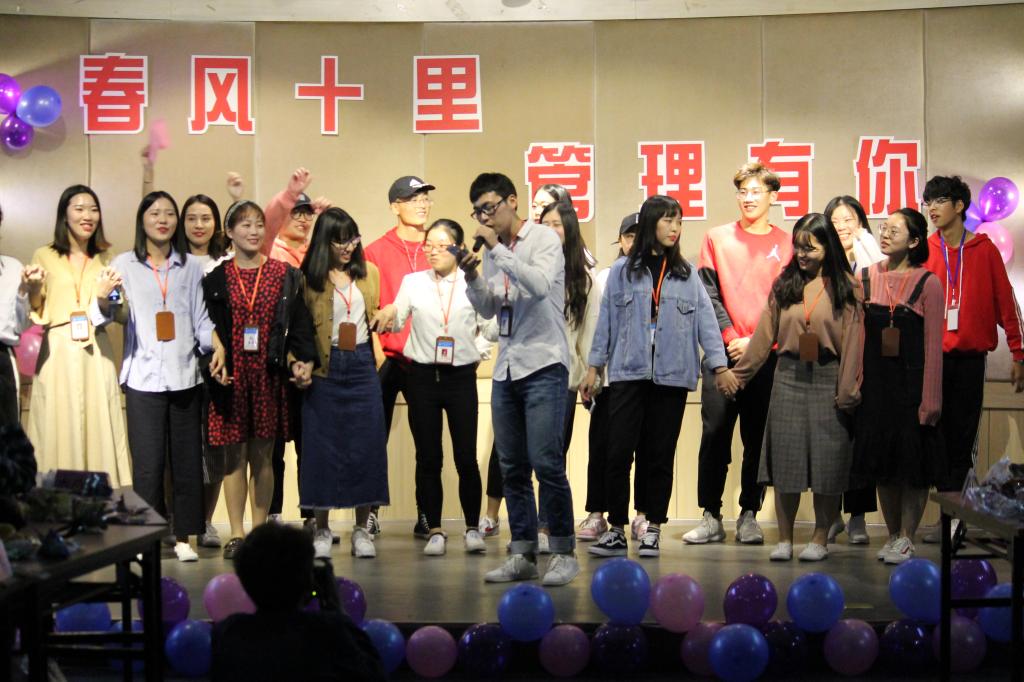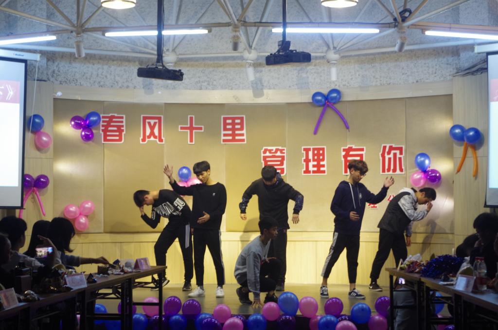伴随着搞怪又炫酷的舞蹈,活动拉开帷幕。管理分院团总支学生会主席团助理们朝气蓬勃的活力,瞬间点燃了活动现场的气氛。