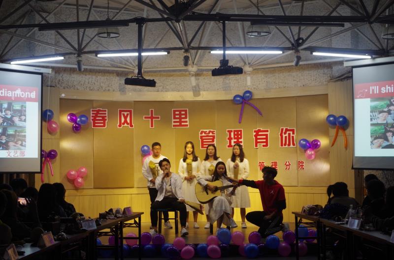 接着,学习部的同学们为我们展示的精彩纷呈的小品《选秀》,搞怪的表演引爆了全场的阵阵欢笑声。随之是办公室表演的怀旧经典《海阔天空》,一首歌曲及表演扣动人心弦,令人陶醉。无论是搞笑的小品表演还是优雅的舞蹈表演,都深深吸引着全场人的目光,令人拍案叫绝,欢呼声和掌声不断。在节目表演的间隙,穿插的游戏更是使在场的观众放下身心全身心投入到了这场艺术的盛宴,平时学业繁忙的紧张气氛似乎也渐渐消散,在多姿多彩的校园活动中找到了自我。