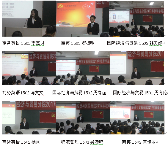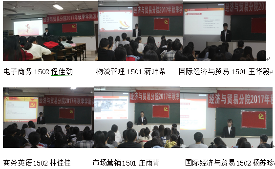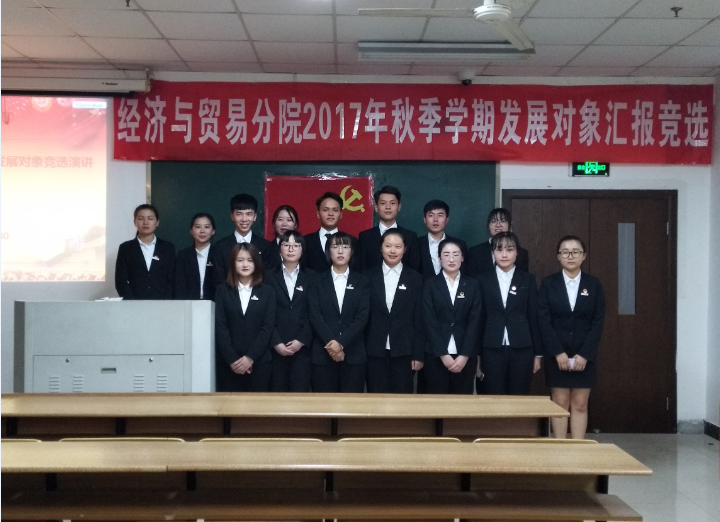 10月30日晚上6:30,经贸分院在6号教学楼6502教室举行2017年秋季学期发展对象汇报竞选。担任此次汇报竞选的评委有经贸分院党总支书记张勰老师,学生第二党支部支部书记朱杨琼老师,辅导员向政老师,学生第一党支部书记、辅导员周妍妍老师和辅导员郑雪琦老师。