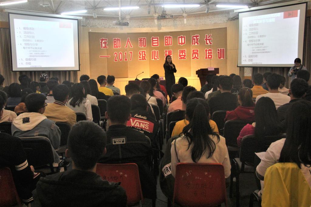 班级心理委员是高校心理健康教育体系中一支重要的基础力量,扮演着心理健康知识的宣传员、班级心理健康教育活动组织者和心理问题信息员等多重角色。历年来心理委员培训一直是我院心理健康教育工作的一项基础性工作。从10月30日到11月3日,我院心理咨询中心开展2017级班级心理委员系列培训。