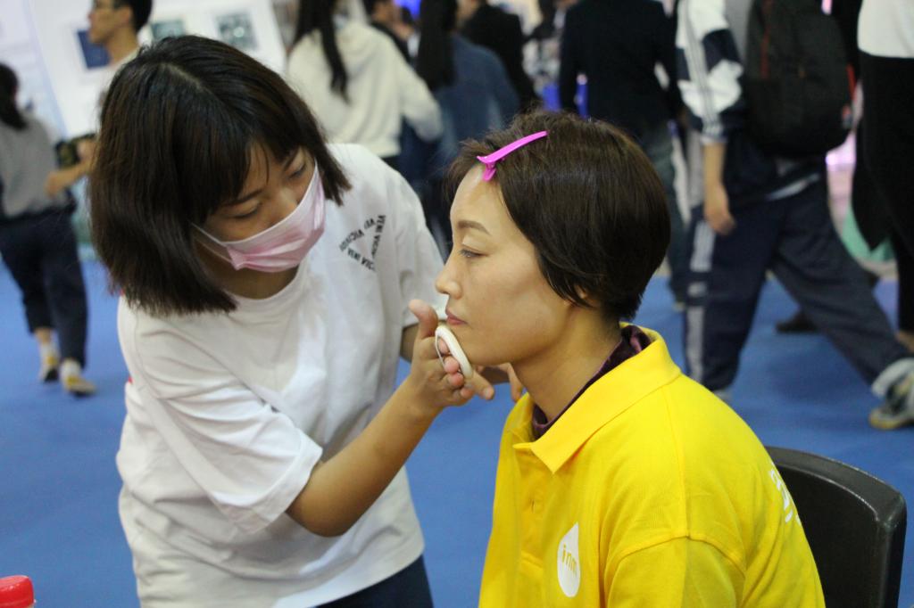 我院“2+1”巾帼创业班、文创班的同学们也在此次创博会上展示风采,他们凭借自己在创业学院学习的一技之长,在创博会现场开展了一系列的互动公益活动。他们有的为市民、小朋友化妆,有的进行传统灸疗体验,有的为市民拍摄最美证件照,受到广大市民的欢迎,人气爆满!