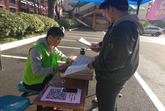 志愿者均为在校的相关专业的学生。场外的志愿者主要负责引导、接待咨询工作,在咨询点为考生及其家长们提供学校以及专业的信息咨询,同时以过来人的角色安抚考生及家长的紧张情绪,积极与考生、家长交流技能高考的心得体会。场内的志愿者主要负责休息区招待工作,服务送考家长、老师以及学生在休息点休息。同时,考场内的志愿者们协助考官帮忙引导考生进入考区,帮助监考老师执行考生们身份信息的检录工作。