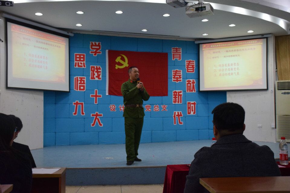 2017年12月21日晚上18:30分,设计分院“学思践悟十九大,青春奉献新时代”主题活动在阶梯教室开展。设计分院全体教师党员、学生党员、入党积极分子和2017级全体学生参加本次活动。此次活动分为九个环节,将十九大内容以同学们喜爱的方式一一呈现。