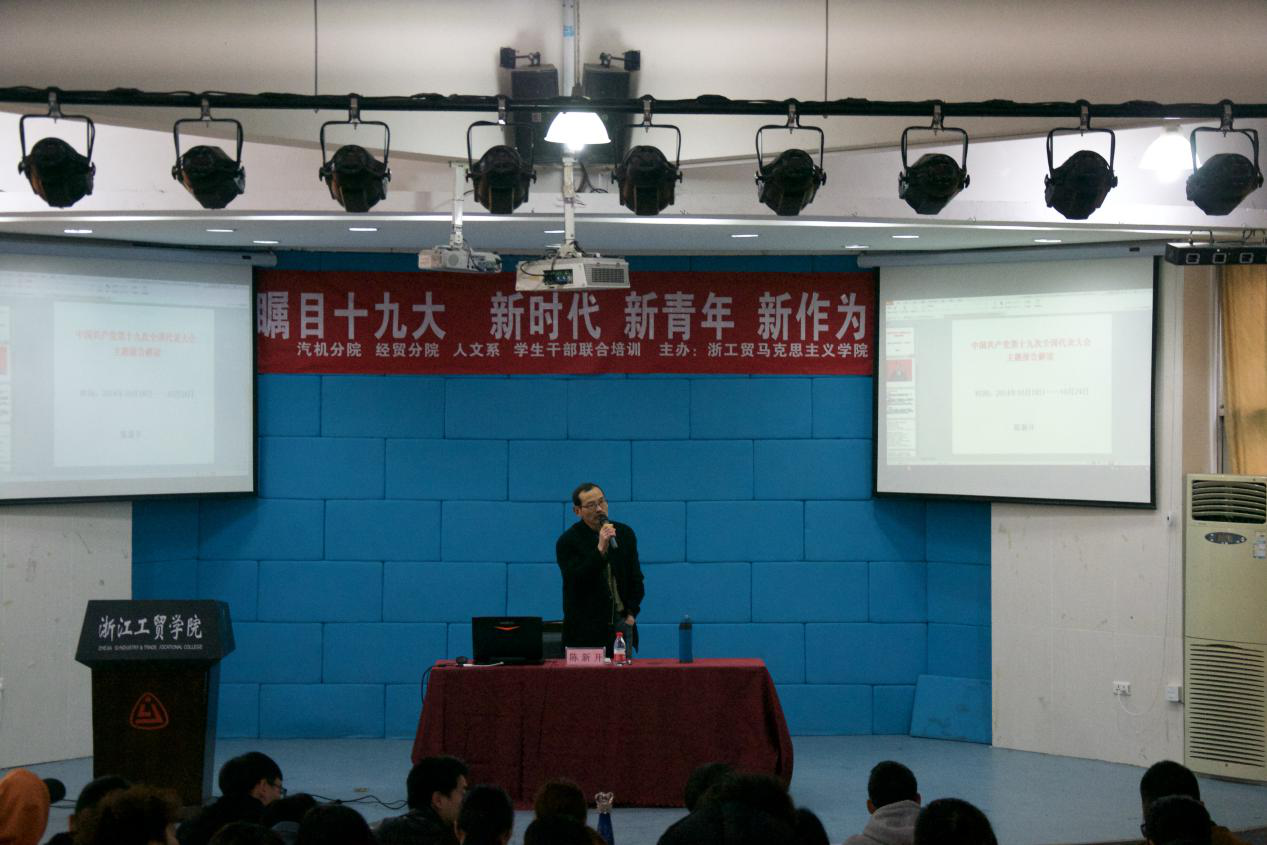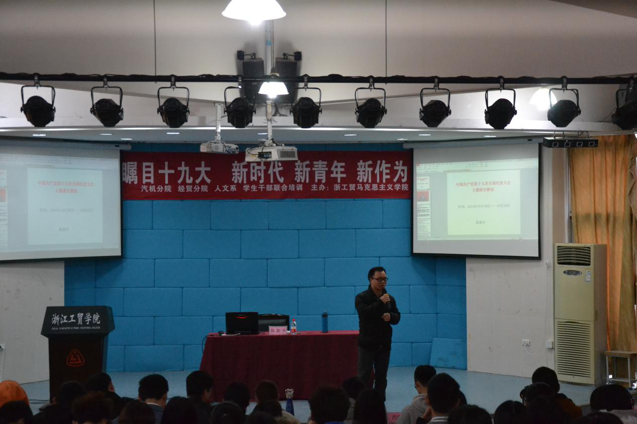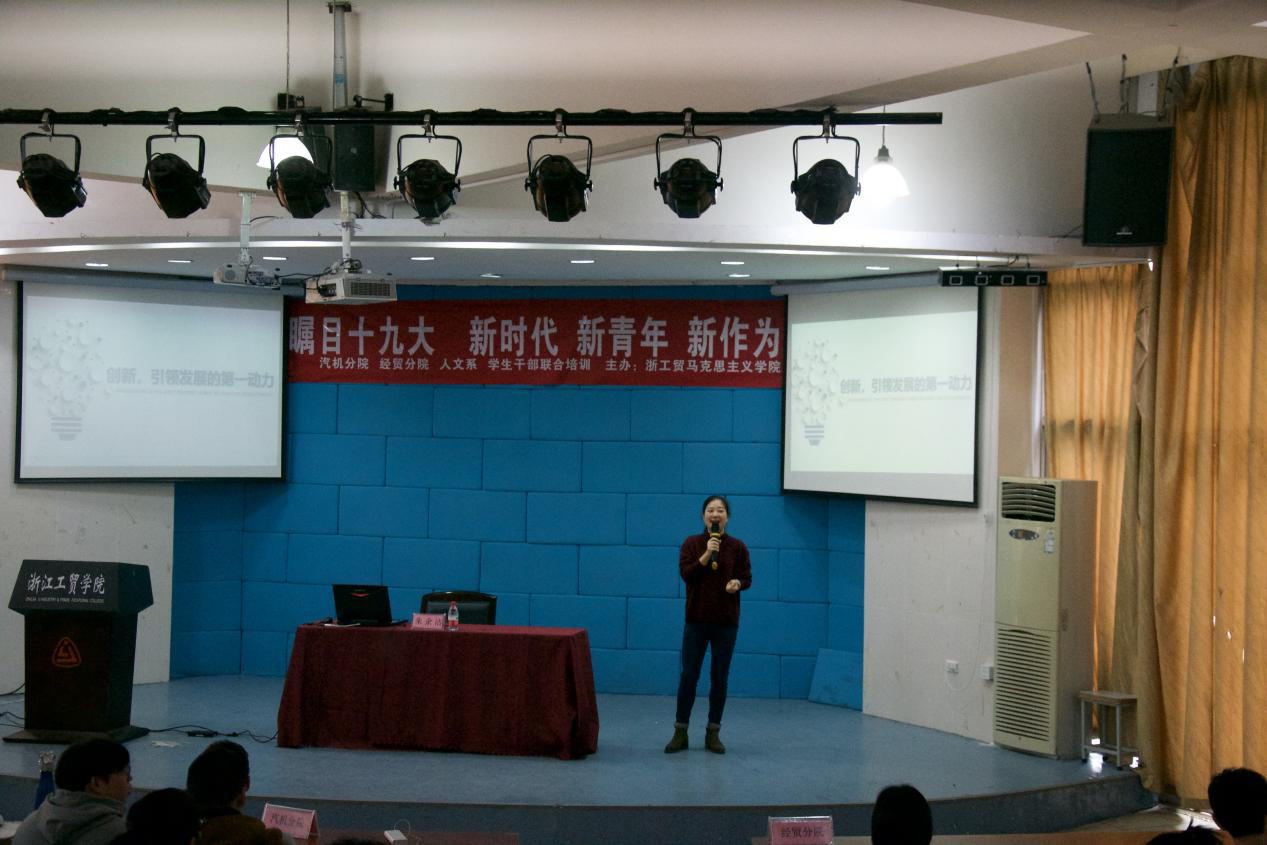 习近平同志在党的十九大上的报告,作出了“中国特色社会主义进入新时代”的重大战略判断,提出了“培养担当民族复兴大任的时代新人”的重大战略命题,还十分突出地对一代代青年接力奋斗实现中国梦提出重大战略要求。伟大的新时代,召唤堪当大任的新青年!2017年12月23日上午8:30,由伟德BETVlCTOR1946马克思主义学院主办的第四次三院系(汽机、经贸和人文)班团学生干部联合培训在在阶梯教室隆重举行。此次培训由人文系陈新开老师和朱余洁老师主讲,经贸分院全体班委以及团总支学生会全体成员两百余人参加此次培训。