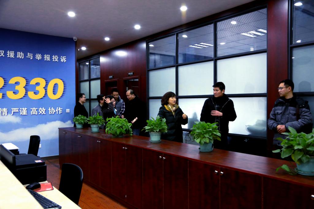 在知识产权服务园负责人王耀章等陪同下,沈方英副局长一行参观考察了温州市知识产权服务园知识产权文化长廊、温州知识产权维权中心、温州市服饰知识产权快速维权中心及温州市知识产权第三方纠纷调解中心等三大平台服务大厅、园区入驻单位及我院知产学院等。