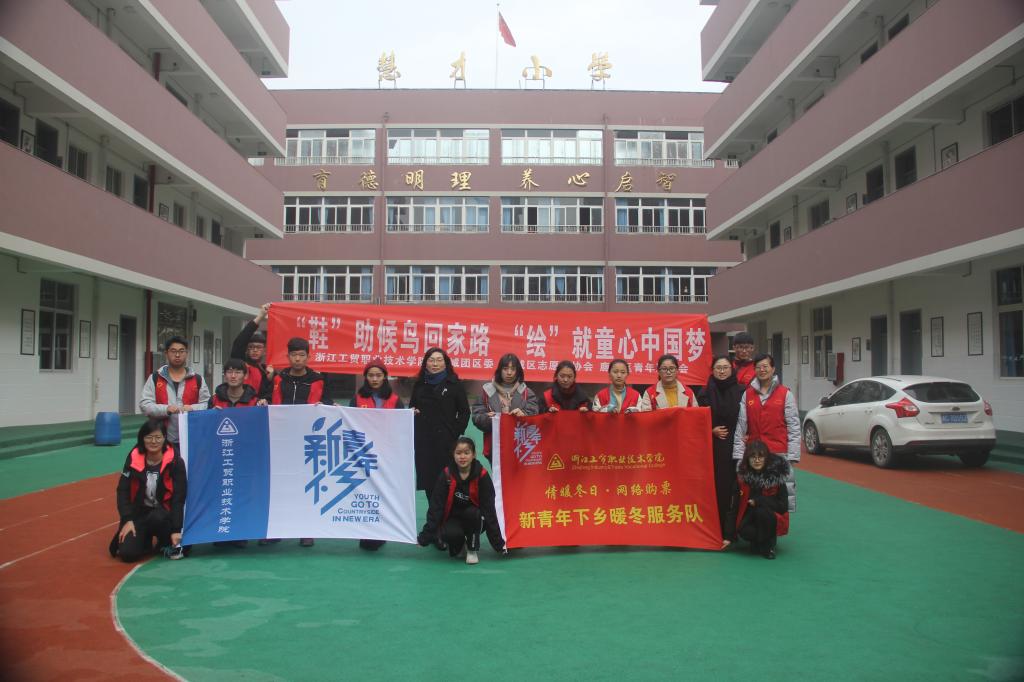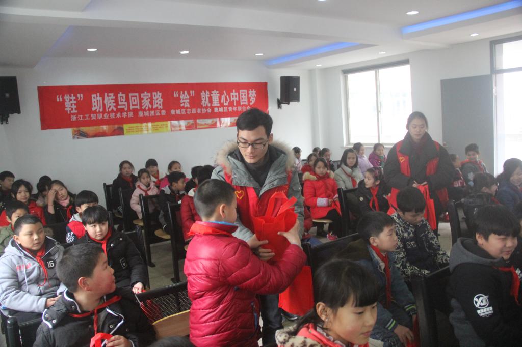 1月29日,伟德BETVlCTOR1946联合鹿城团区委等四家单位开展“‘鞋’助候鸟回家路,‘绘’就童心中国梦”新青年下乡活动,活动在鹿城区仰义街道新居民子女学校——慧才小学进行。志愿者们冒着严寒为“小候鸟”送上“暖冬”礼物。