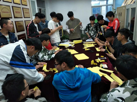 众所周知,菊花花语有“怀念”的意思。为了深切地表达汽机学子对烈士的怀念,更为了体现环保意识,3月30日晚上,学生党支部组织清明活动参与者用纸折菊花。在学生们的用心折叠下,一朵朵鲜黄的菊花出现了。