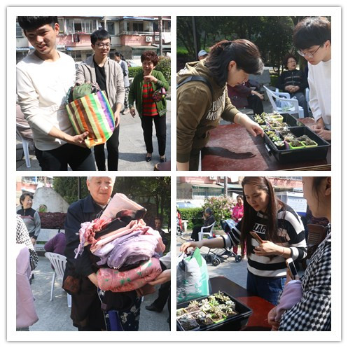 三月二十九日清晨,成教学院志愿者整装待发,前往菱藕社区开始新青年下乡活动,在过去我们成教学院就在菱藕社区打下良好的口碑,同时在社区负责人的宣传下,社区居民纷纷将自己的旧衣服旧书集拿到活动地点进行交换,有些居民甚至只将衣服给我们,连植物都不要,只是为了支持我们的活动,并说我们是好样的。听到社区居民对我们志愿者的肯定,我们心情也像这暖春一样暖暖得,一时间活动地点人山人海的,一些老人不会种多肉,我们的志愿者也细心指导,甚至在活动结束的时候,还有市民过来给旧衣服,最后募捐团队过来的时候,衣服居然多到需要一整辆面包车来运。希望这些衣物能为需要的人带去温暖。