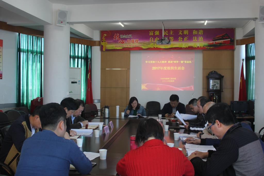为了扎实推进“两学一做”常态化制度化,2018年4月8日下午 ,汽车与机械工程分院党总支在一号教学楼6楼会议室召开“学习贯彻十九大·推进“两学一做”常态化”为主题的2017年度专题组织生活会”,参加会议的有学院党委书记盖庆武同志、纪检监察室督导员陈依凡同志、党委组织部俞通海同志、分院党总支委员以及专业主任,会议由分院院长周章添同志主持。