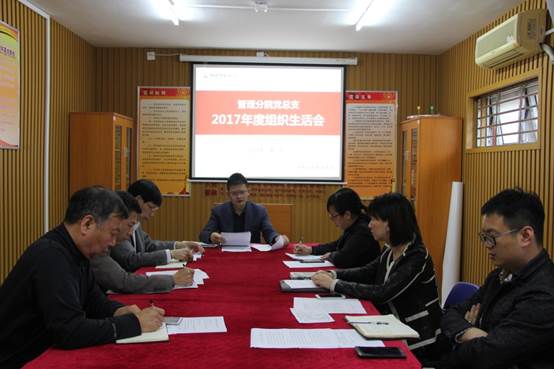 在组织生活会上,管理分院党总支书记首先汇报了“上一年度组织生活会整改落实情况及本次组织生活会准备情况”,接着代表党总支汇报了“2017年度管理分院党总支对照检查情况”,然后学院党委委员、副院长张俊平老师,管理分院各党总支委员及非党员干部等先后进行对照检查发言、接受批评、表态等。
