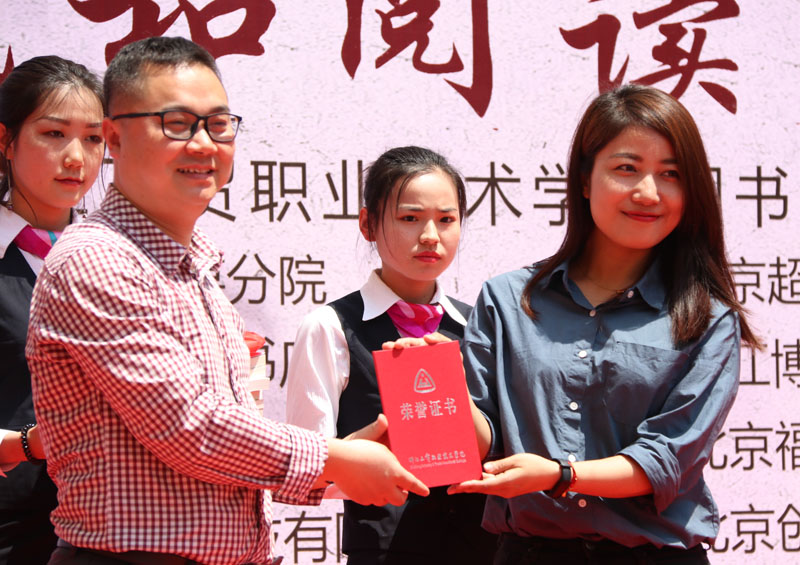 今年读书节系列活动由五大活动组成:读书节开幕式、市普法办赠书仪式、图书馆“网上荐书”活动启动、“你选书 我买单”现场选书活动、“集印章 抽大奖”数据库现场咨询活动。开幕式上各种节目异彩纷呈,朗诵、吉他、歌唱展现工贸学子校园文化生活丰富多彩;蒲鞋市街道选送的越剧和古筝演奏节目,将社区特色文化融入高校校园,吸引了不少观众眼球;温州市普法办向学院图书馆赠送普法图书,普法宣传进校园,向在校大学生普及法律知识;学院图书馆在线“网上荐书”系统正式启动,学院师生实现网上“下单”荐购图书;节目表演间隙,对2017年度“借阅达人”、浙工贸首届“图书馆杯”网络英语口语大赛获奖者进行了颁奖。在广场的另一边,“你选书 我买单”现场选书活动进行得如火如荼,师生们围着温州市新华书店送来的1000多册图书进行选购,师生们只需办个简单手续,就可以直接借走自己心仪的图书,当天共有近400册图书通过种方式办理借阅。“集印章 抽大奖”数据库现场咨询活动更是热闹非凡,抽奖现场奖品丰富,运动耳机、充电宝、蓝牙音箱等,各种奖品深得同学们的喜欢!整个学子广场人声鼎沸,全院师生读者共享了一场校园文化盛宴!