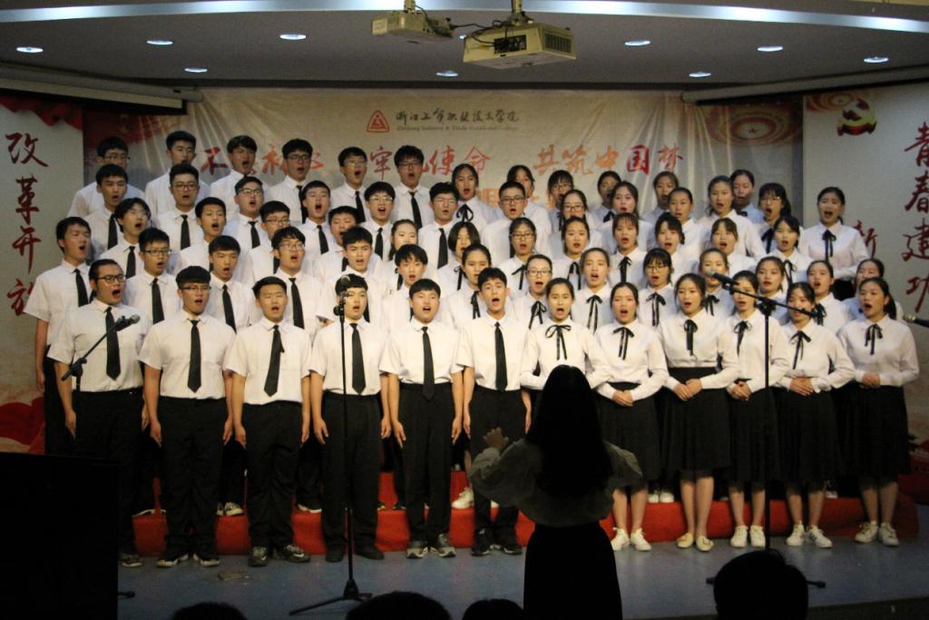 用歌声表达祝愿,用比赛展现豪情。5月5日晚18:30,由学生处(团委)主办,院团委合唱团承办,以“不忘初心、牢记使命共筑中国梦”为主题的五四大合唱比赛在阶梯教室举行。参加本次活动的领导嘉宾有学院党委委员、副院长倪建发老师、学生处处长林海春老师、团委副书记高莎老师。担任此次大合唱比赛的评委有温州大学音乐学院声乐副教授、硕士生导师刘玉亭老师,温州大学音乐学院音乐学博士、副教授、硕士生导师柏互玖老师,温州大学音乐学院声乐教师、英国北方音乐学院访问学者许天鸣老师,温州大学音乐学院声乐教研室声乐讲师易雄志老师以及温州大学音乐学院讲师、温州爱乐合唱团团员李葳老师。全院1200多名师生参与演出和观看,各分院系敞开心扉,唱响红色经典,抒发新时代豪情。