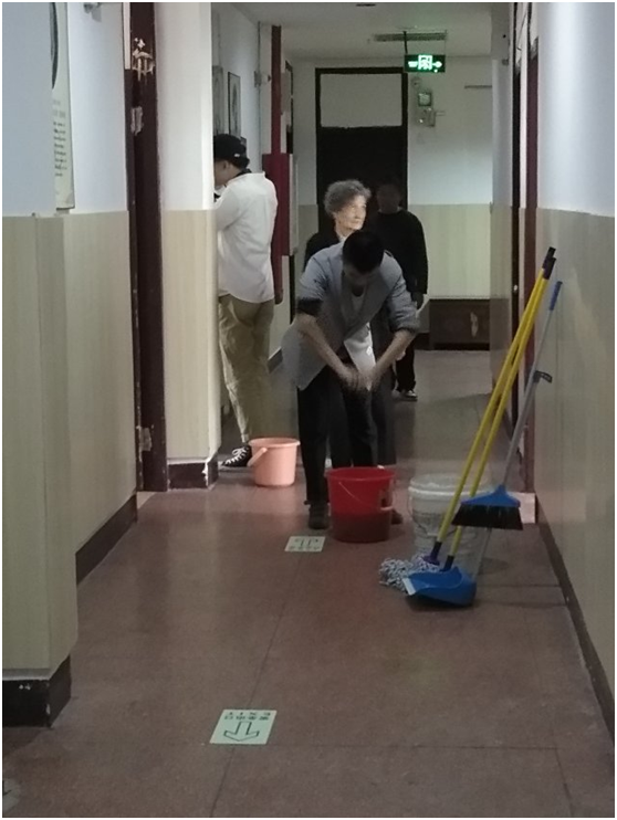 活动初始,同学们3人一组和老人进行沟通交流,听他们讲述年轻时的故事和现在的生活状况,了解老人生活中的不便和老人们的希望,使他们感受到温暖。同时大家一起撸起袖子,拿起扫把、抹布等清洁工具,帮老人们打扫房间,擦拭玻璃和地板等,希望他们能够有个舒适的居住环境,用最实在的行为温暖老人。活动期间,老人们可爱的笑容,激发了大家更高的热忱。我们用心聆听老人,用爱温暖老人,用行动将尊老的美德切实贯彻!