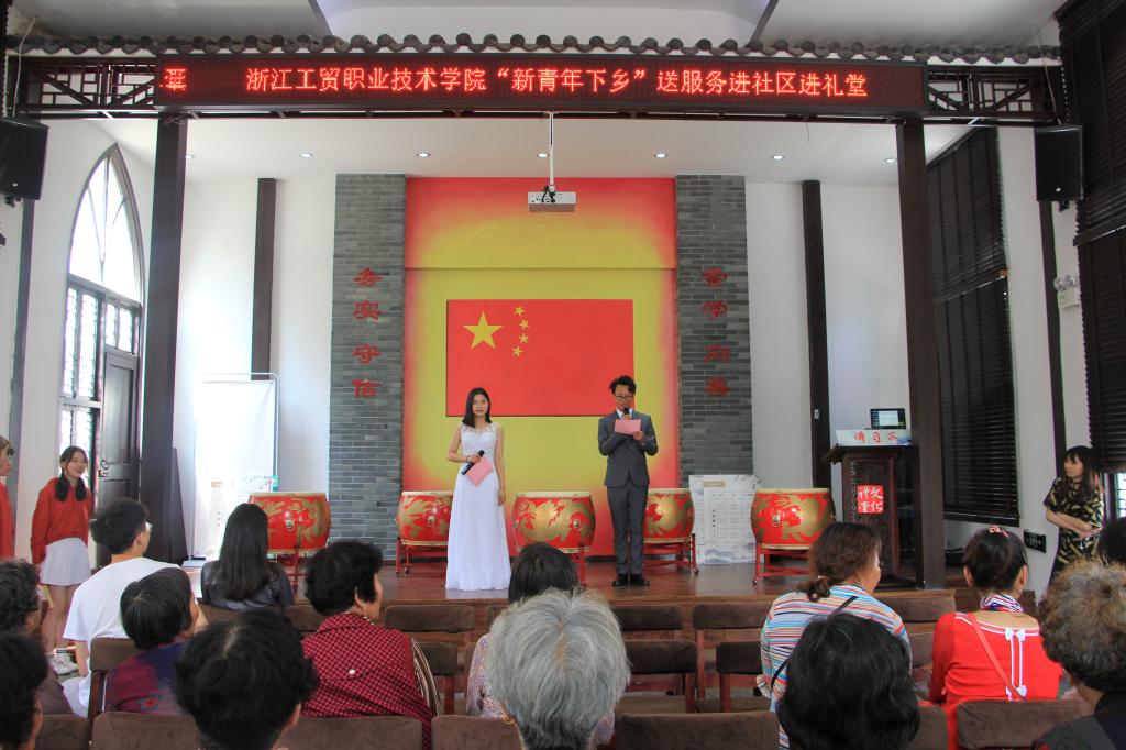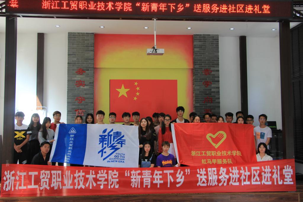2018年5月11日下午,在五四青年节之际,学院“新青年下乡”服务队的30名志愿者们在团委张慧老师和郑建强老师的带领下走进了温州市鹿城区七都街道樟里文化礼堂为樟里村的乡亲们送上了文艺演出。
