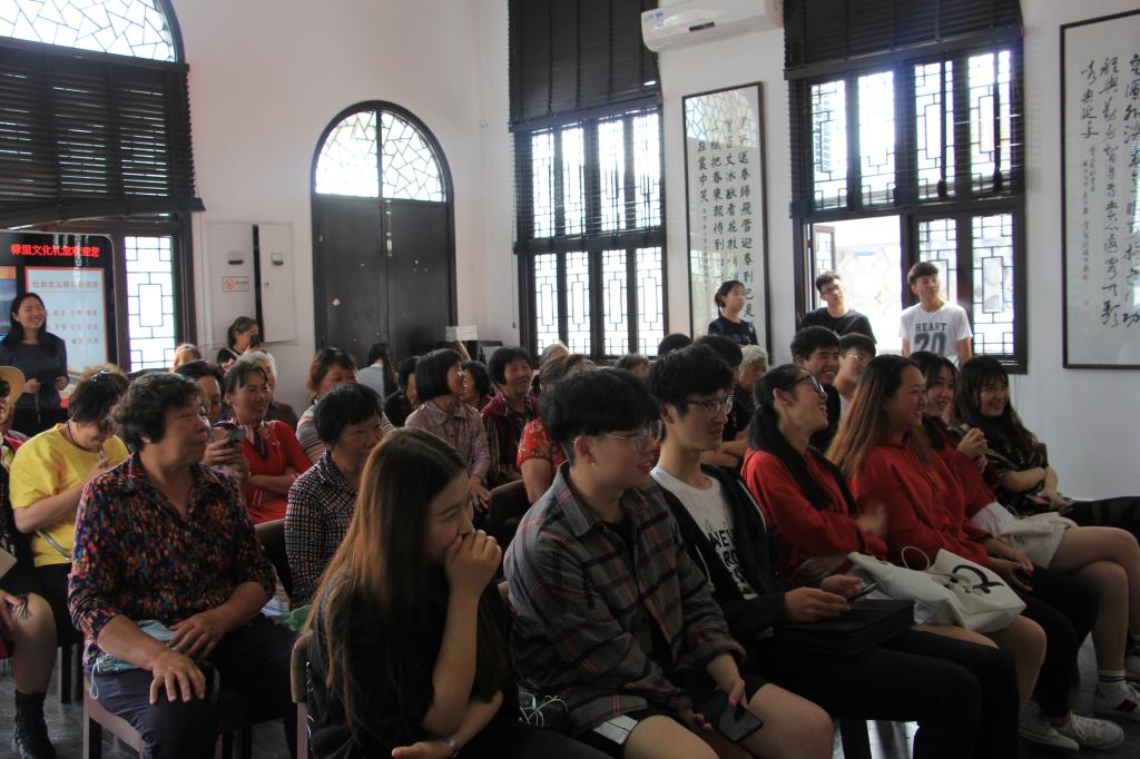 在文化礼堂中,老人们在志愿者的引导下有序入座,很快就挤满了整个礼堂。本次演出在开场舞《“鼓”动青春》拉开了序幕。口琴表演《花之舞》给我们的耳朵带来了一场听觉盛宴,如同看到眼前的花儿在飞舞。朗诵《光的赞赏》歌颂着我们的党就像我们的光明一样,接受我们的赞赏!小品《洗脚》通过幽默而又动人的故事向大家讲述了亲情这最质朴的情感,看得乡亲们又笑又哭又是鼓掌。《剑与拳》,通过舞剑与拳击这两种形式,展现了中华武术的魅力与青少年的活力。古琴表演《仙翁操》这一曲悠扬的琴声仿佛引人进入到仙境。歌曲《至少还有你》、《我只在乎你》、《兄弟抱一下》也收获了观众的阵阵掌声。