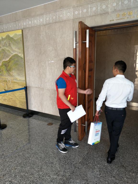 为响应此次活动,伟德BETVlCTOR1946经贸分院绿丝带16位青年志愿者,早上6:30分便出发前往温州市人民大会堂,到达之后团委老师给志愿者分发了红马甲,并将每个同学安排在不同的工作岗位上,各司其职,着手准备工作。转眼间,嘉宾们便陆续得抵达现场,身穿红马甲的志愿者们负责接待来访嘉宾,穿梭在嘉宾之间,引导他们入座、协助安保人员进行物品检查等,并且在会堂内有4名志愿者全程服务。