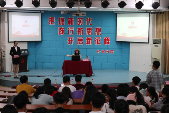 为深入学习贯彻习近平新时代中国特色社会主义思想,经贸分院于5月24日在阶梯教室成功举办了“把握新时代 践行新思想 开启新征程 ”专题讲座,特邀请人文系郭薇老师为本次活动主讲人。经贸分院党总支书记张勰、辅导员吴妮妮及分院300余学生聆听了本次讲座。