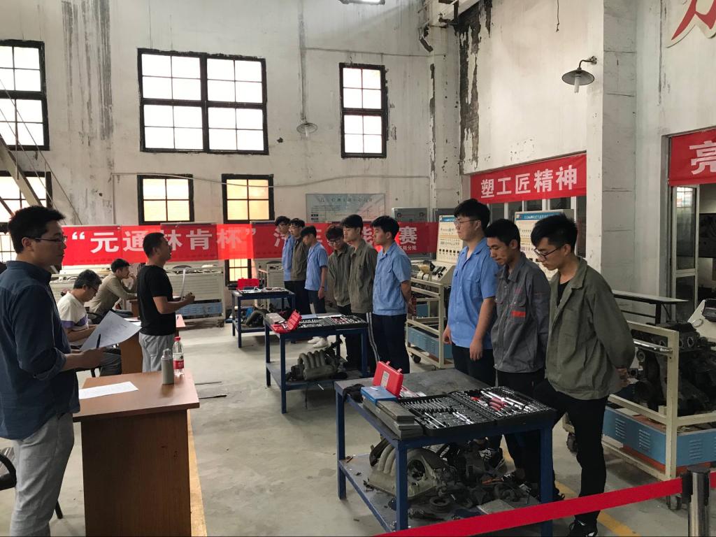 本次大赛分为两个环节,第一轮是实训室现场拆装发动机技能比拼,第二场是汽车维修知识竞赛。为了让同学们学到更扎实的专业知识,比赛期间还特意请专业老师对参赛选手进行为期两周的赛前培训。5月中旬在汽车实训场地展开了第一轮实操初赛,对6组参赛选手的专业技能进行考核,并由此筛选出了四强参加第二轮的知识竞赛。