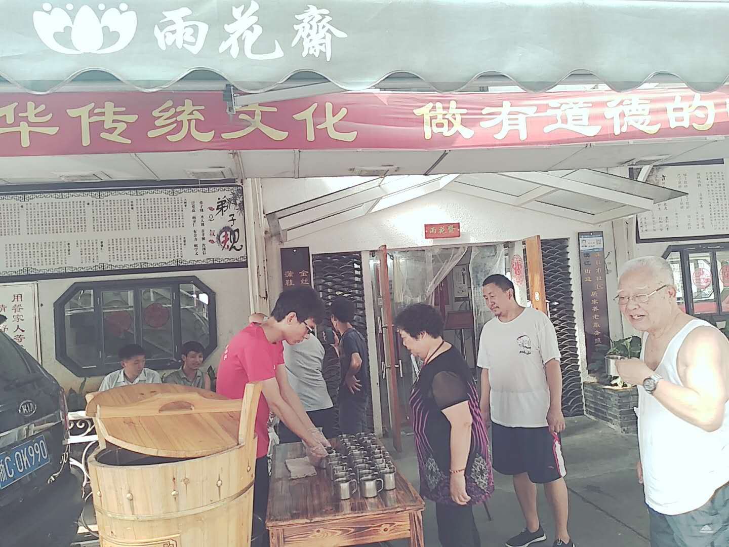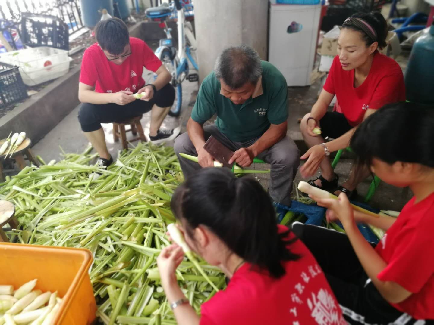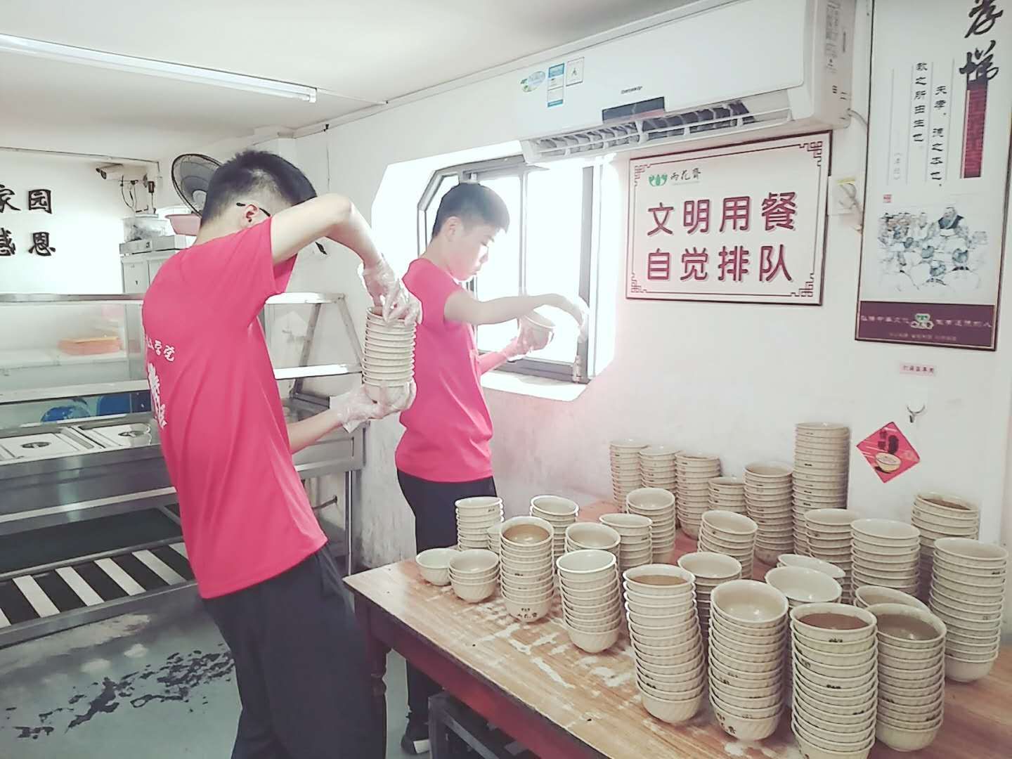 温州“雨花斋”免费午餐,浙工贸暑期实践队志愿者亲身体验,身着红色队服,迎客时90度弯腰鞠躬道一声“欢迎回家”,送客时道一声“感恩吃素”,这是“雨花斋”志愿者们共同的习惯,它并不是一种服务,而是一种礼貌。位于市区蒲鞋市街道这家“雨花斋”是社会助老、敬老公益组织,来自社会各界爱心人士的捐助,捐款,捐物,出力,不约而同,自主奉献,免费提供给社区周边居民互助午餐,他们践行社会主义核心价值观,是新时代社会主义先进性的缩影,传扬传统文化,提倡素食,健康环保,让素食、朴素、低碳、环保成为一种生活方式。免费素食自开张以来,“生意”每天都很红火,“服务员”队伍也日渐壮大。周末两天,伟德BETVlCTOR1946暑期实践队郭秀清老师及13名学生在雨花斋体验了两天的志愿者工作,迎客、洗菜、洗碗……每一环节都饱含艰辛。