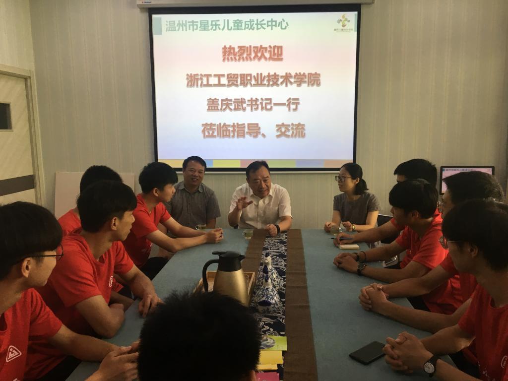 星乐儿童成长中心是一所针对自闭症及发育迟缓的特殊儿童群体而开办的康复培训机构,由于受助对象的特点,这里的教师及工作人员的工作量相对较大,特别是孩子的家长们承受着更多的精神上、经济上的各种压力,志愿者的到来对于家长和老师们而言是非常重要的助力。盖书记在跟中心的教师和同学们进行交流以后表示,这样的实践活动非常值得肯定,这是大学生了解社会情况,关注弱势群体,弘扬社会主义核心价值观,发挥奉献精神的重要渠道。交流会最后盖书记赞扬同学们的辛苦付出,同时表达了对同学们的关心,提醒同学们在夏季炎热而多变的天气里要注意自身健康和来回出行的安全。