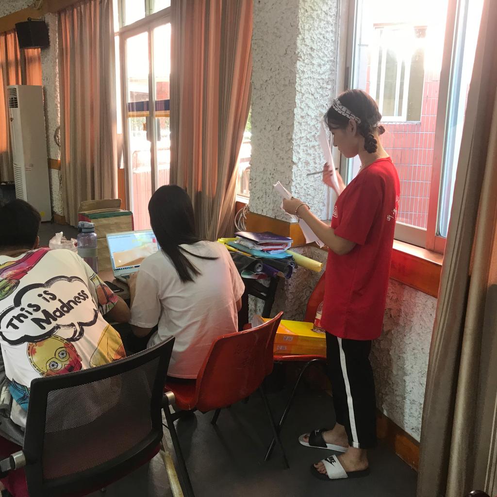 两岸的学生每一个都非常的认真且热情。每个人都积极的做最后的完善工作,希望能把自己所学发挥出来,不负自己,把自己对作品的热情完全注入其中。每一个人都希望他们能够把自己对作品的理解发挥到极致做出满意的作品。他们对作品的热爱和激情值得志愿者去学习,去尊敬。