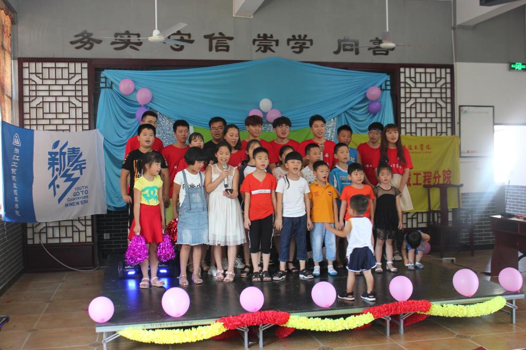 由于台风即将来临的缘故,我们将提早结束此次的“新青年下乡”暑期社会实践之旅。在最后一天走前的中午,我们准备了最后的成果汇报演出。与当地居民、小朋友共计准备了11个节目展现给当地居民们。其中有我们与小朋友一起设计制造的环保时装秀,也是以此来传播环保的重要性!