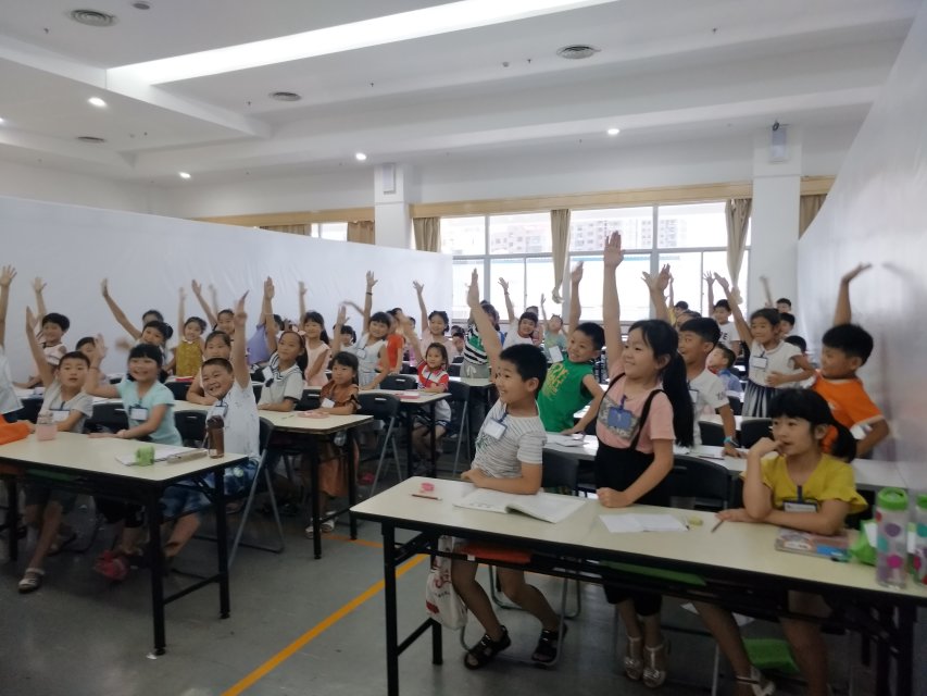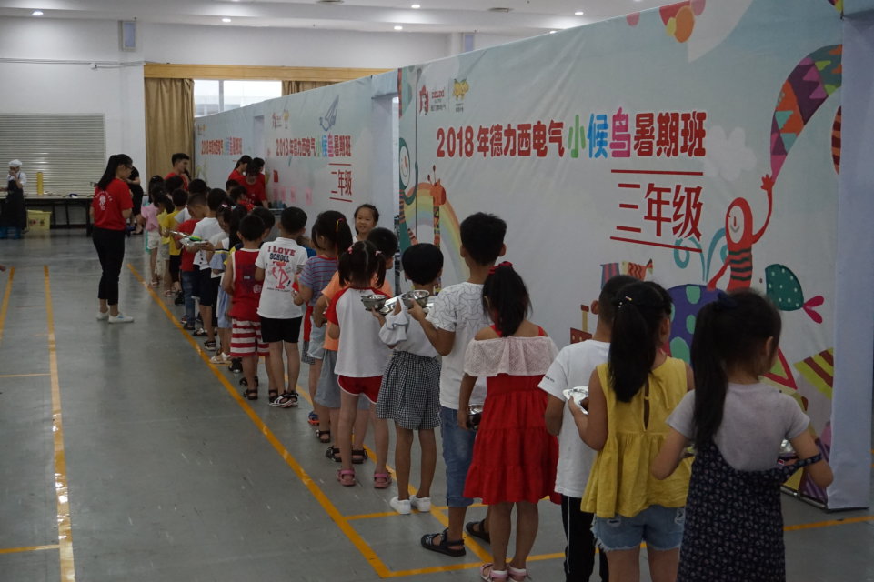 德力西小候鸟暑期班第二天上课啦!早上七点左右同学们就已经陆续到校了。为确保每位小朋友的安全,每个年级的老师都在点到,安排学生就座。