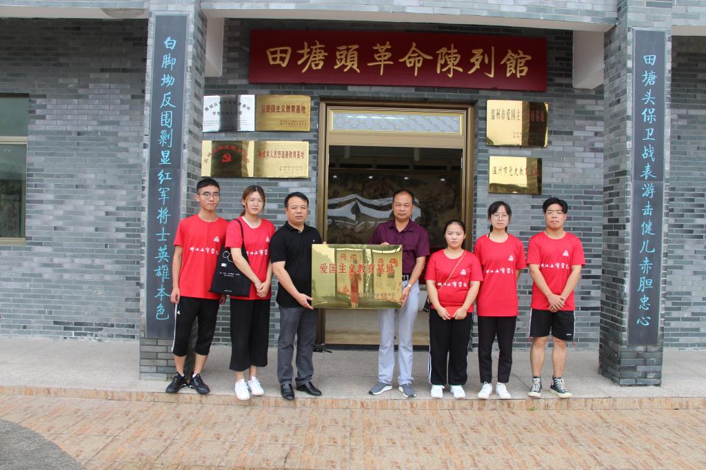 7月6日,学生处处长林海春带领大学生创业者联盟的老师同学在田塘头村举行授牌仪式,田塘头村正式成为我院爱国主义教育基地。随后,我院师生在田塘头村村支书郑金钿的带领下,参观田塘头革命纪念园和陈列馆,接受思想洗礼,学习革命精神,传承红色基因。在革命纪念园,同学们还给革命烈士献上鲜花,并庄严宣誓。此次活动,增强了同学们爱国主义精神,也对田塘头村的情况有了进一步了解,接下来,联盟同学将根据革命老区村的实际需求,做好长远规划,细化服务项目,提高服务能力。