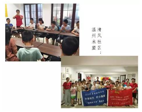 为推动非物质文化遗产融入生活,不断丰富未成年人的暑期精神文化生活,让孩子们能够近距离地体味家乡文化遗产的魅力,2018年7月6日至20日,浙工贸管理分院“非遗创艺,匠心焕耀”新青年下乡服务队联合鹿城区文广新局主办,鹿城区非遗保护中心、鹿城党群服务中心,冒着酷暑,跑遍鹿城区各街道社区,开展了50场非遗进社区活动,让1000余名青少年走近非遗、体味非遗、共塑非遗,得到了社会广泛赞誉。