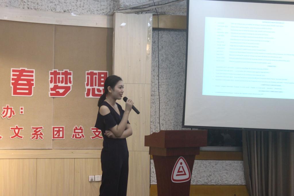 9月20日晚上6:30,人文系 “追随优秀学子 铸就青春梦想”毕业学子论坛在多功能厅内如期开展。人文系党总支书记章纪顺、辅导员叶盛芳、法语专任教师范呈彬和尹晨以及2017级、2018级法语专业学生参加了此次论坛。此次论坛主讲嘉宾金春蝶和袁玥分别是2013届和2018届应用法语专业毕业生。金春蝶2013年9月留学法国巴黎造型学校Christian Chauveau,后又师从于Yves Saint Laurent秀场专职发型师Agathe ségura学习时尚造型。2018年回国后在Lav创意设计公司担任搭配师,为品牌361,eland,莫乂,tulipe taste,研色等工作,同期也先后拿到巴黎时装周发型师offer。袁玥将于9月赴法国读语言学校,并被ESGCI商学院录取,现就读奢侈品管理专业本科三年级。